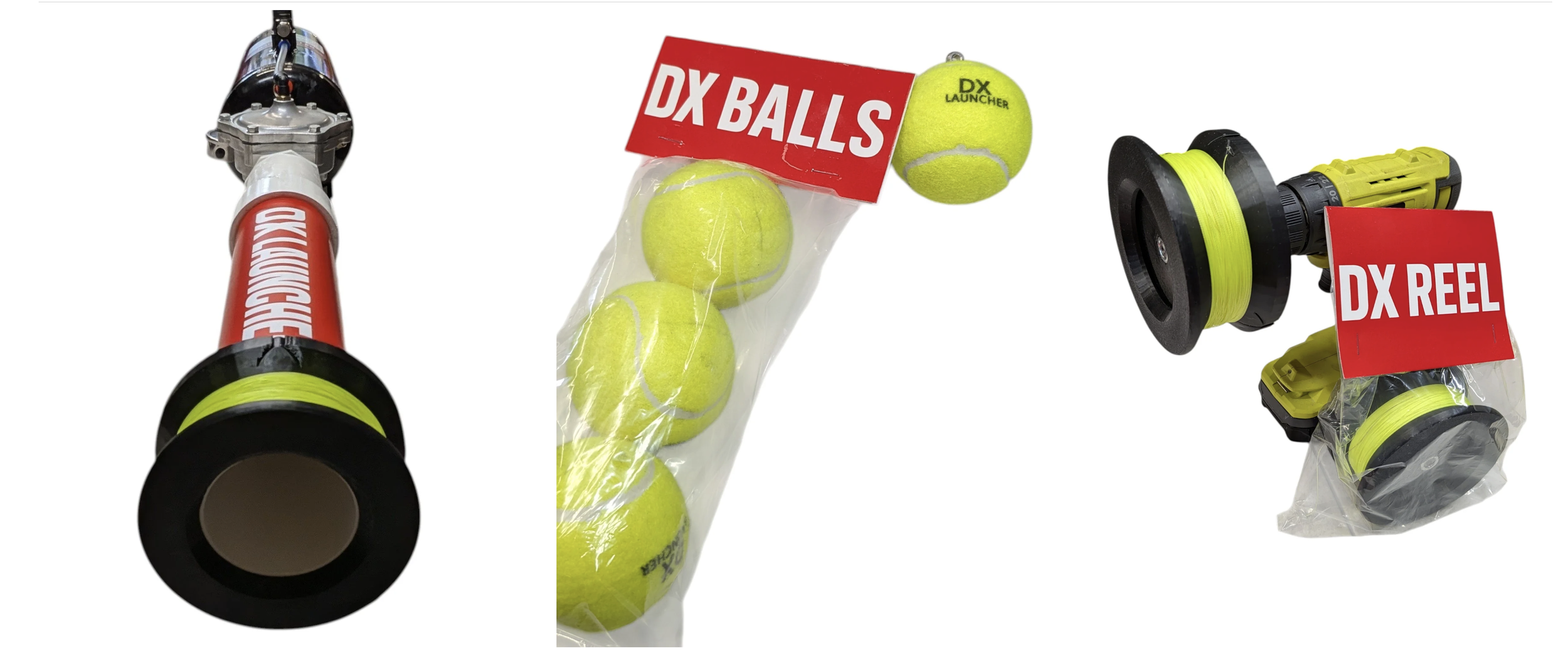 We started with the DX Launcher PVC Tank, but then took things up a notch with the bad boy of the lineup: the DX Launcher Plus, featuring a commercial-grade metal tank. Both models will easily clear a 150' tree, but the Plus can launch as high as 300'.